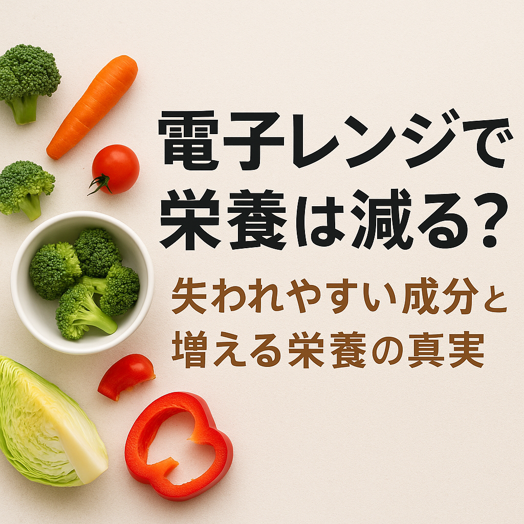 - 栄養を減らす主な要因は「熱・水・時間」であり、電子レンジそのものが特別に危険なわけではない