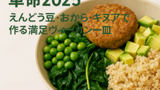 プラントプロテイン革命2025:えんどう豆・おから・キヌアで作る満足ヴィーガン一皿
